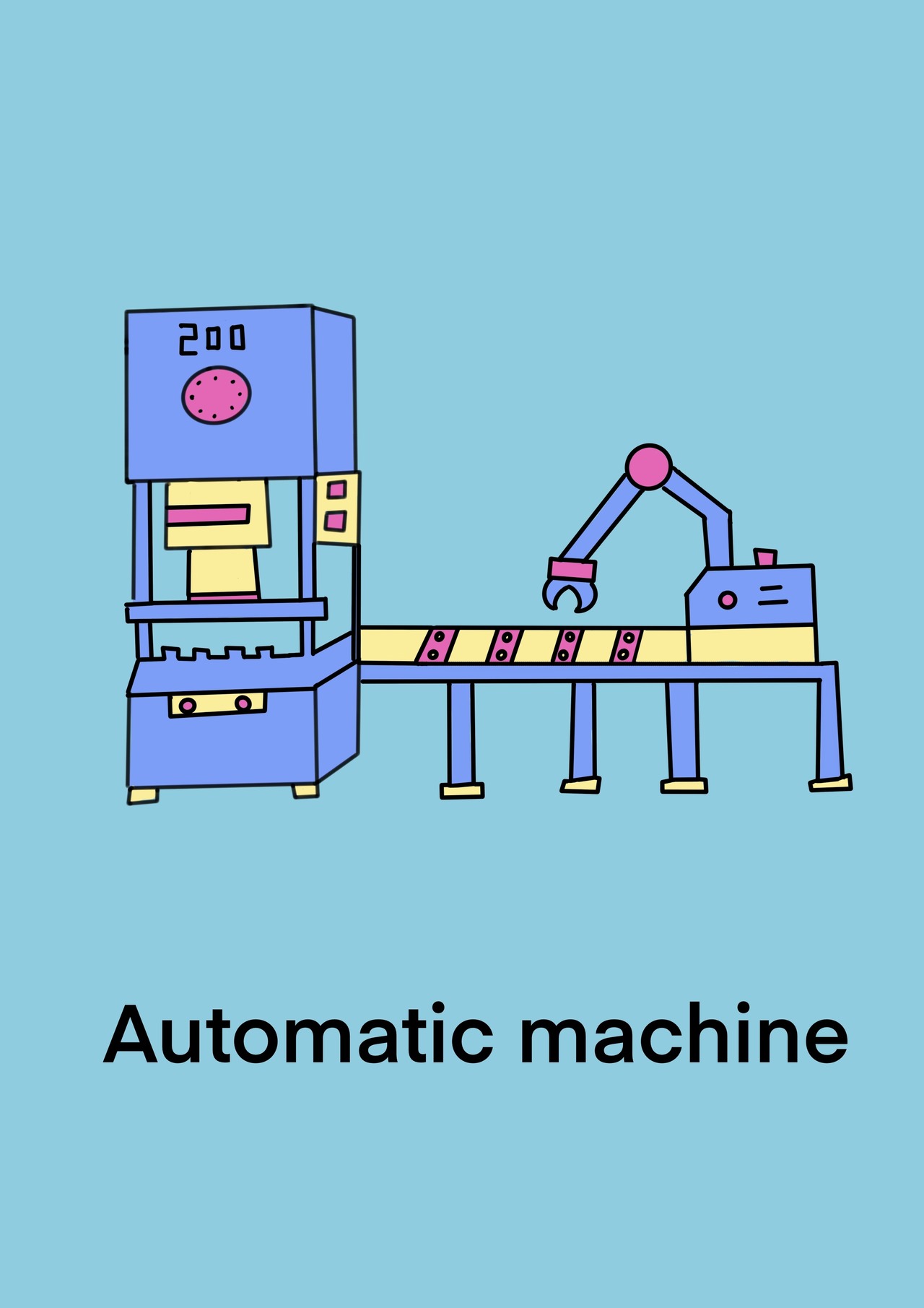 工場の自動加工機のイラストが、あなたの作業場を明るく彩ります!かわいらしいデザインは、日々の仕事に楽しさをプラスし、工場内の雰囲気を一新することができます。複雑な機械も、アートとして楽しむことができる素敵なアイテムです。