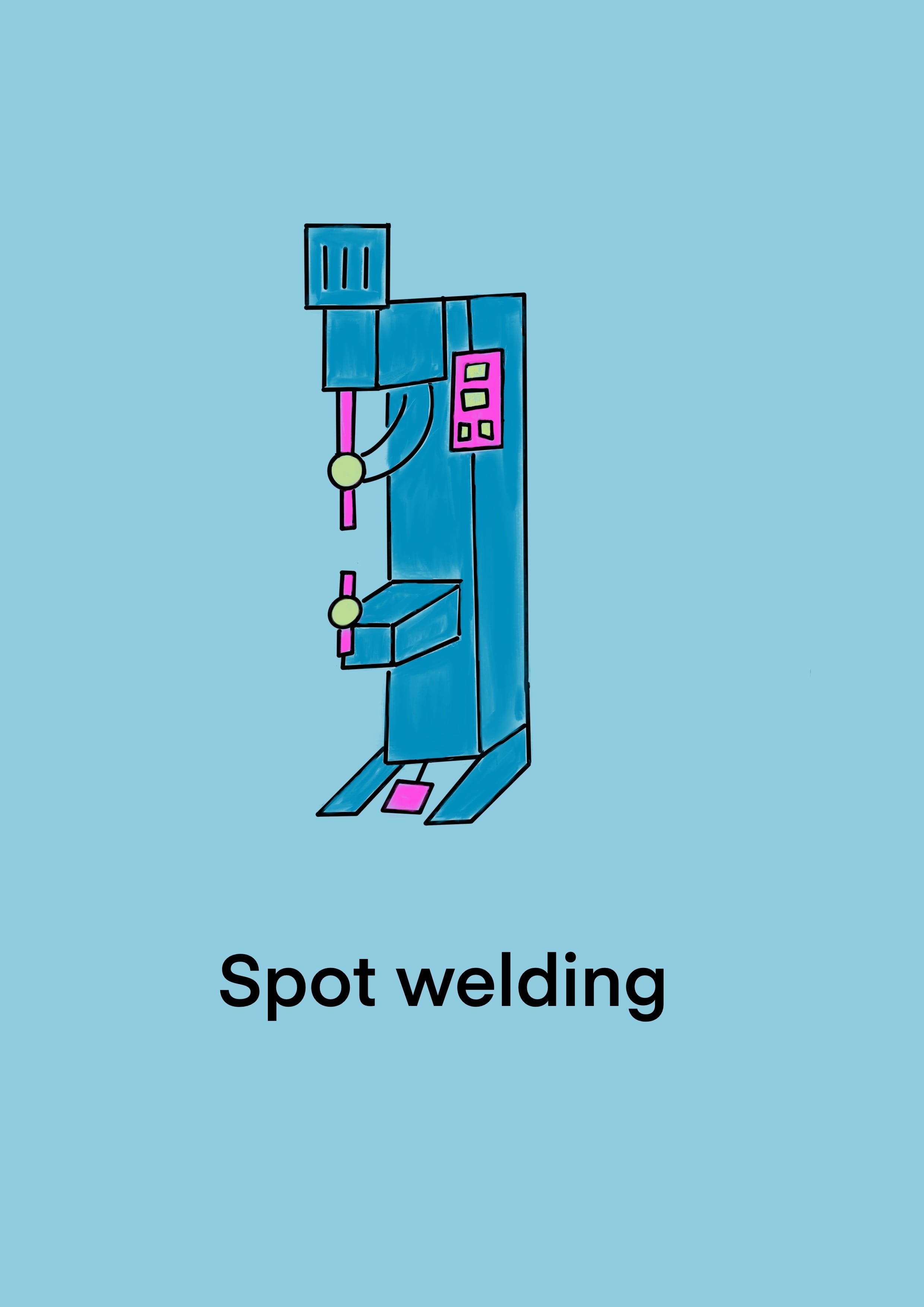 工場のスポット溶接機のイラストが、あなたの作業場を明るく彩ります!かわいらしいデザインは、日々の仕事に楽しさをプラスし、工場内の雰囲気を一新することができます。複雑な機械も、アートとして楽しむことができる素敵なアイテムです。