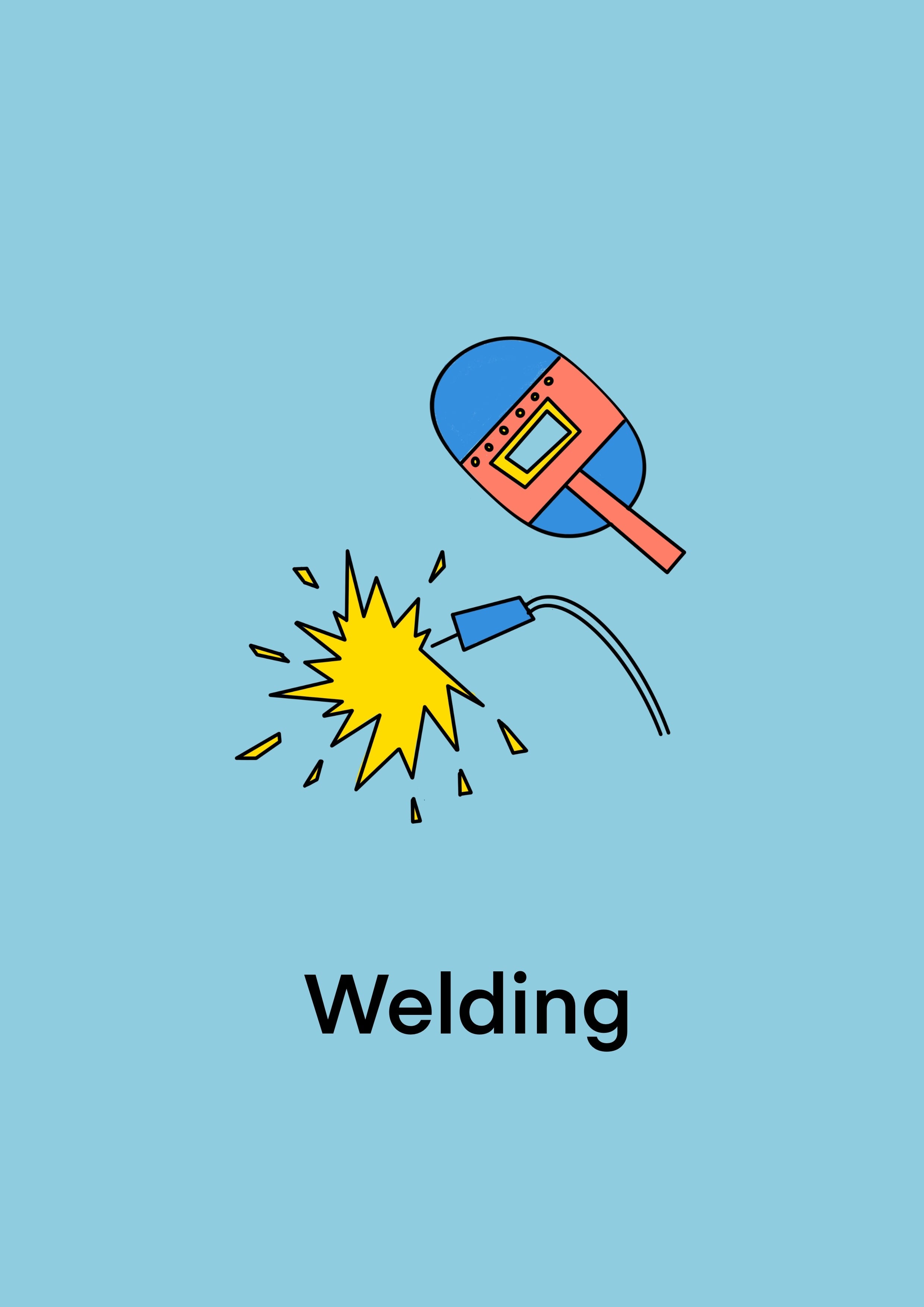 溶接加工のイラストが、あなたの作業場を明るく彩ります!かわいらしいデザインは、日々の仕事に楽しさをプラスし、工場内の雰囲気を一新することができます。複雑な機械も、アートとして楽しむことができる素敵なアイテムです。